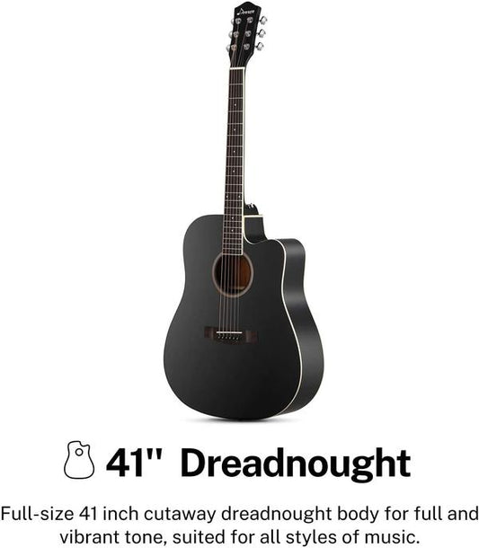 41'' Cutaway Acoustic Guitar Full Size Spruce Guitar Bundle with Gig Bag Tuner Accessories Full Starter Kit Black Color