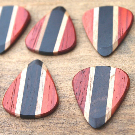 Padauk, Teak, & Ebony Wood Guitar Or Bass Pick - 3.0 mm Ultra Heavy Gauge - 351 Wedge Shape - Natural Finish Handmade Specialty Exotic Plectrum