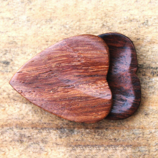 Rosewood Guitar Or Bass Pick - 3.0 mm Ultra Heavy Gauge - Heart Shaped - Natural Finish Handmade Specialty Exotic Plectrum