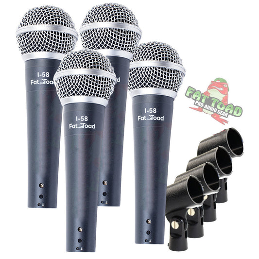 Cardioid Microphones with Clips (4 Pack) by FAT TOAD - Vocal Handheld, Wired Unidirectional Mic