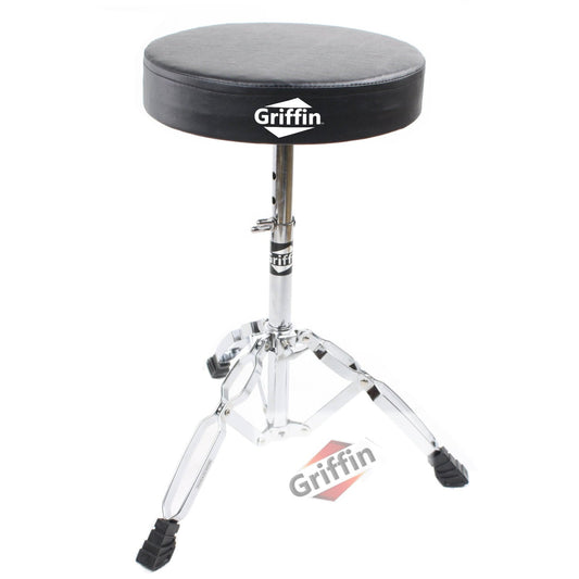 Drum Throne Stand by GRIFFIN - Padded Drummer’s Seat - Drum Set Percussion Chair for Adults - Musicians Guitar Stool Double Braced Hardware