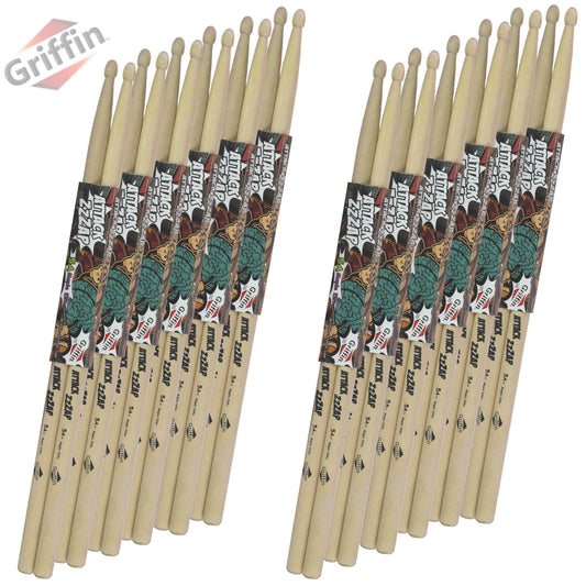 12 Pairs of Select Elite Maple Wood Drum Sticks by GRIFFIN Attack Zzzap - Size 5A Premium Balanced