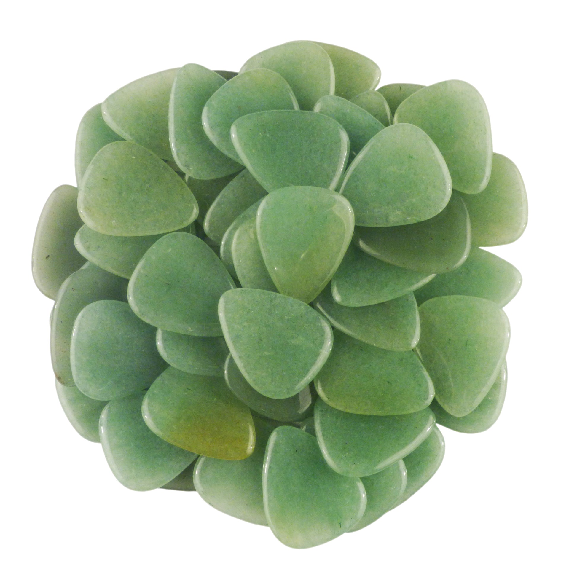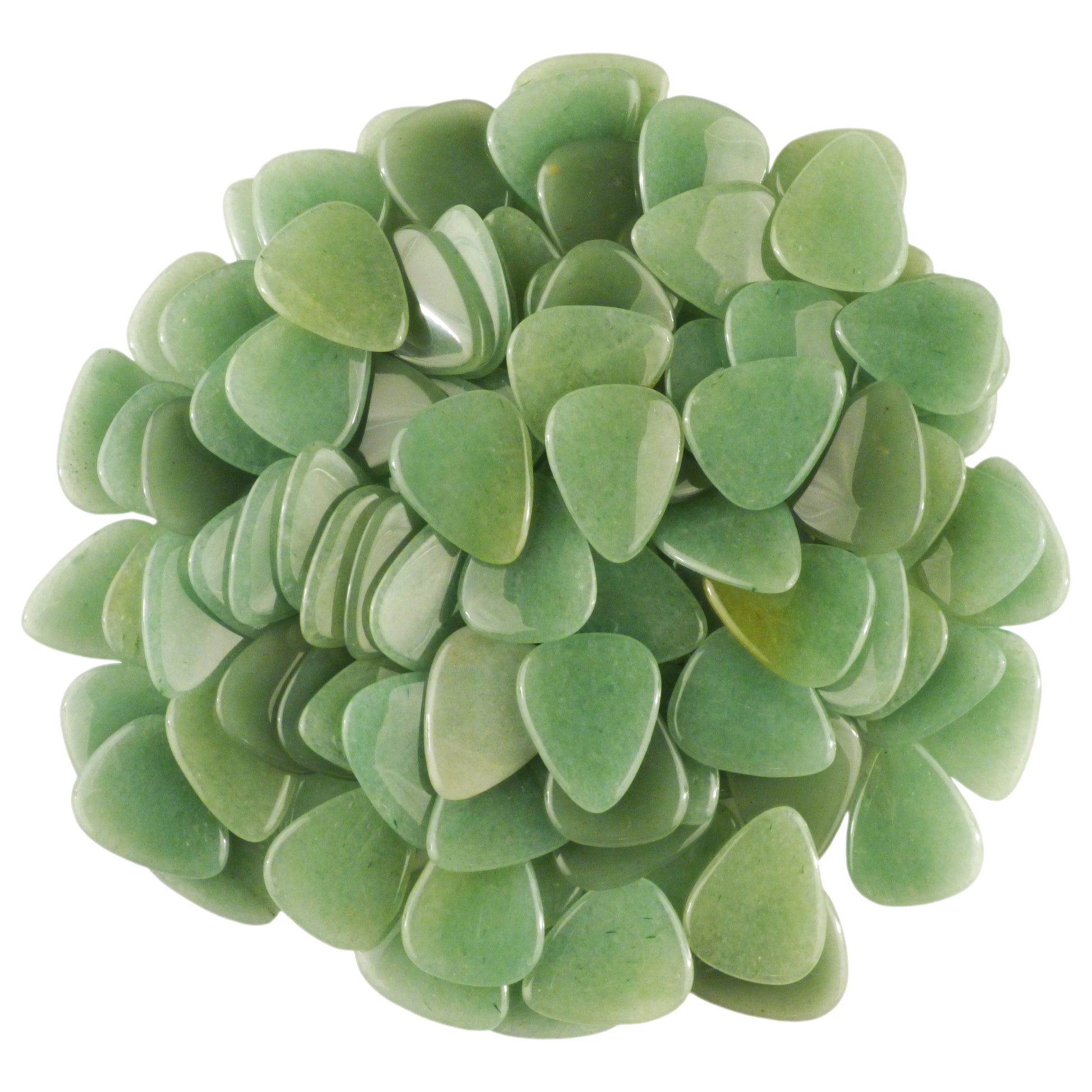 Green Aventurine is a hard and durable stone, with an approximately 6.5 rating on the Mohs hardness scale, which makes it a fantastic and long lasting material for use in guitar picks.