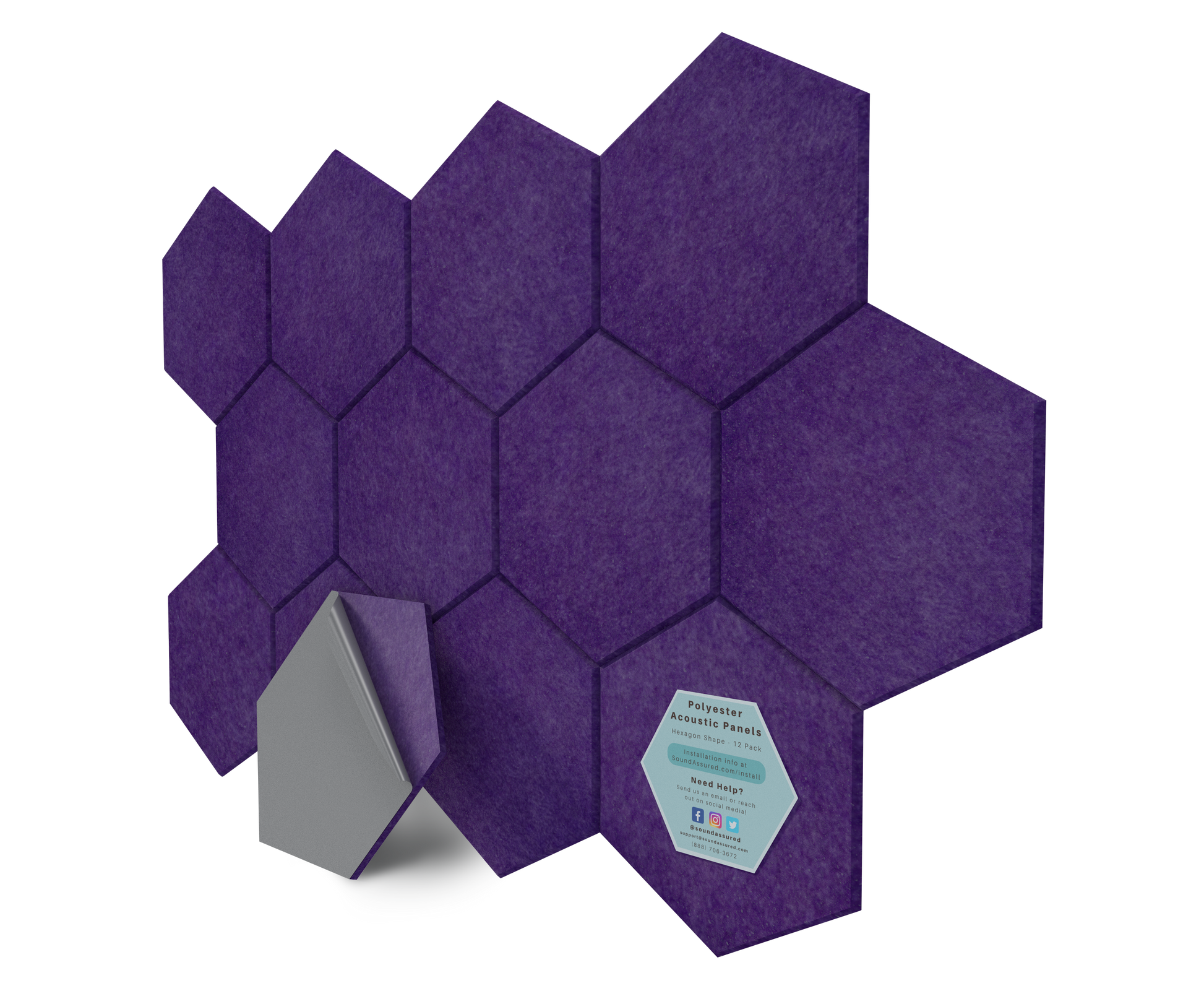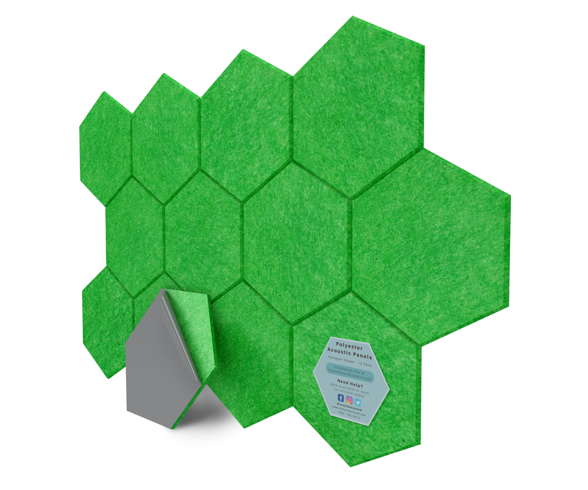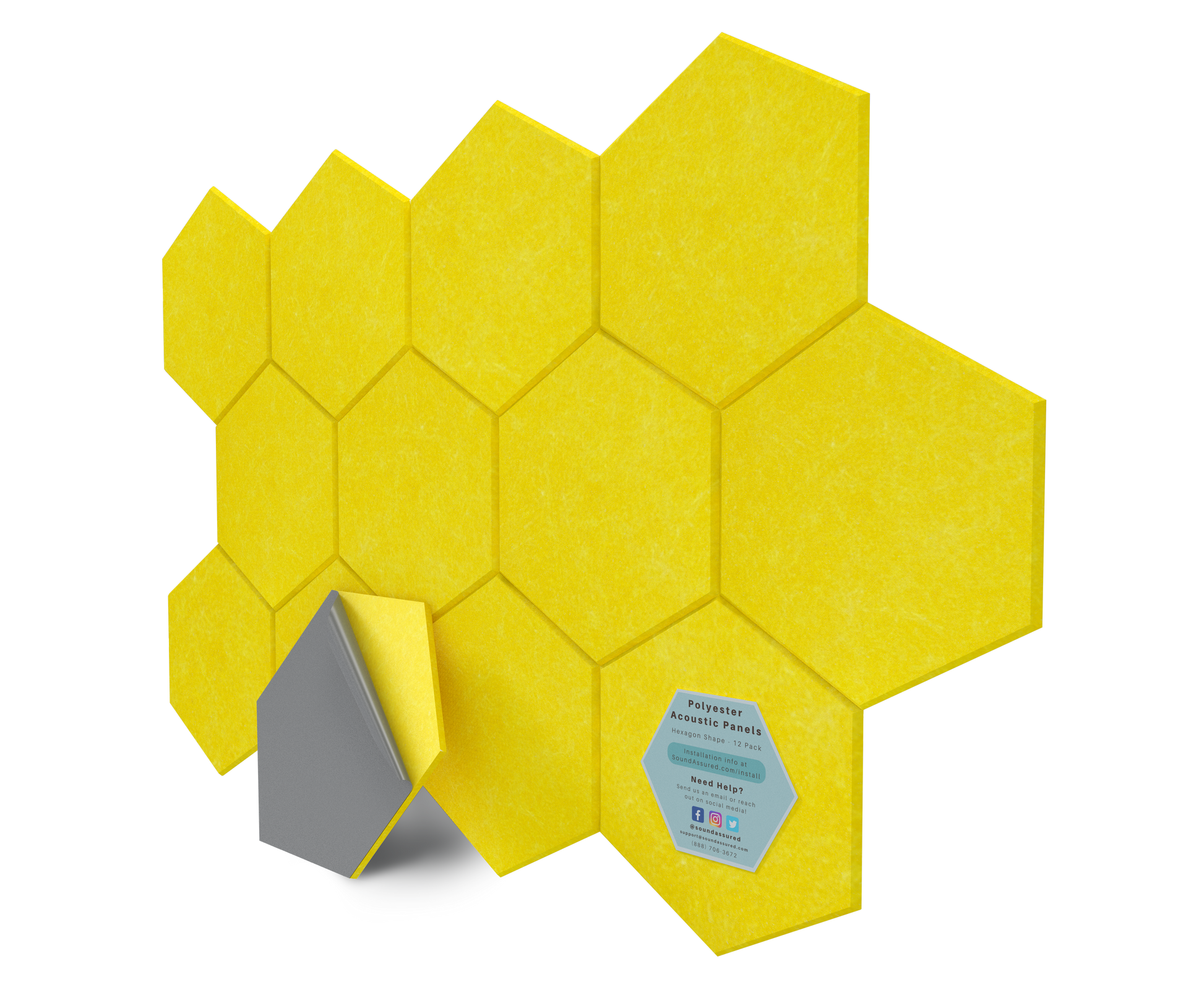 Hexagon Polyester Acoustic Panels - 12 Pack | Eco-Friendly Sound Absorption | Easy Peel & Stick Installation